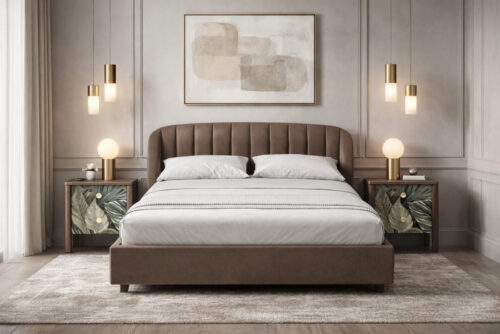 Глубокая стяжка ткани мягкого изголовья выглядит эффектно в любом цвете, добавляя образу кровати объем и изысканность.