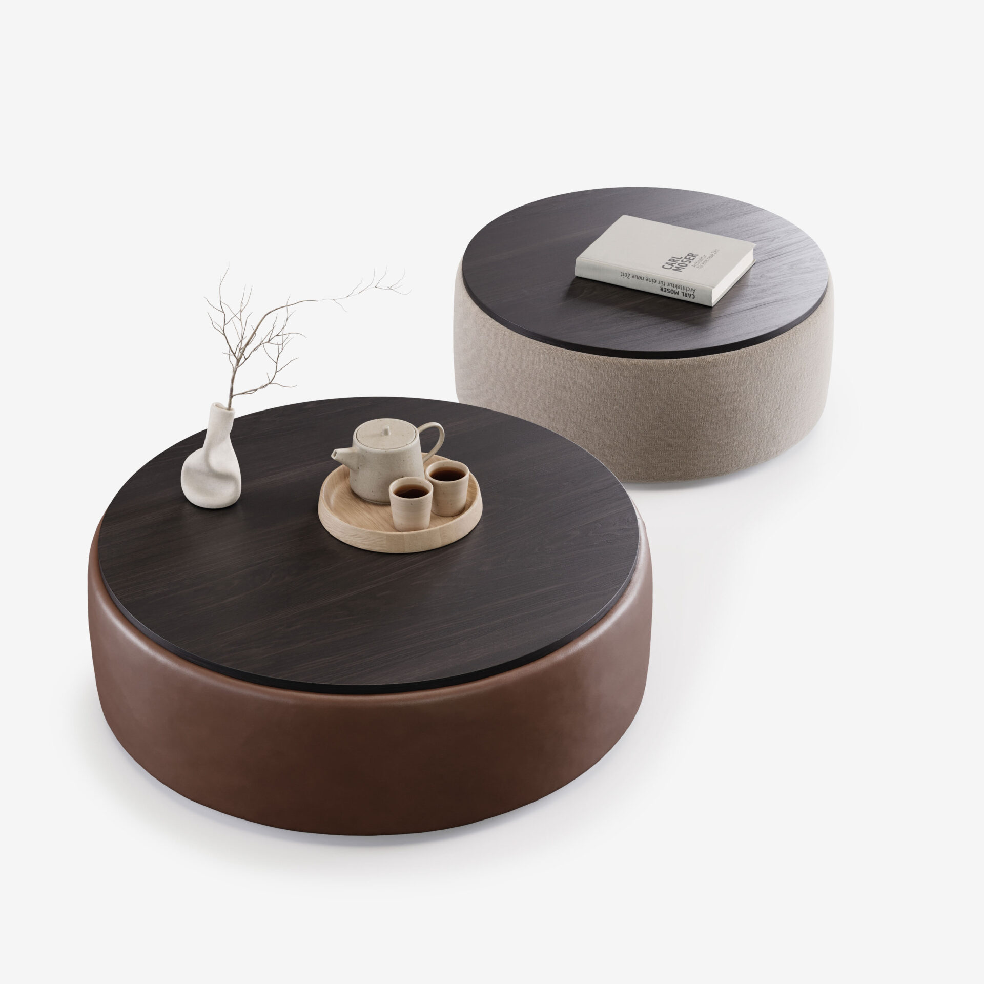 Все модули самостоятельны — их можно комбинировать или использовать по отдельности, создавая именно ту среду, которая вам нужна. Коллекцию дополняют кресла, повторяющие ее пластику, и многофункциональные пуфы-столики с отделкой из шпона дуба. Диван можно персонализировать практичными элементами: подлокотниками, подставками, боковыми столиками и ящиками для хранения, которые легко объединяются с основными модулями.